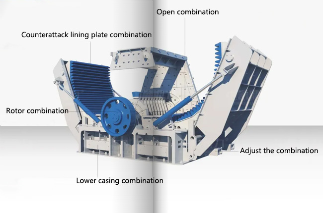The Zhongyu Dingli DLKPC dual chamber hard rock crusher is mainly composed of components such as counterattack lining plate combination, rotor combination, opening combination, adjustment combination, and lower casing combination.