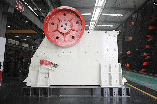 Jaw crusher mainly consists of bracket, eccentric spindle, large v-belt, flywheel, side guard plate, toggle plate, toggle seat, gap adjustment screw, captured spring, and fixed and moving jaw plate.